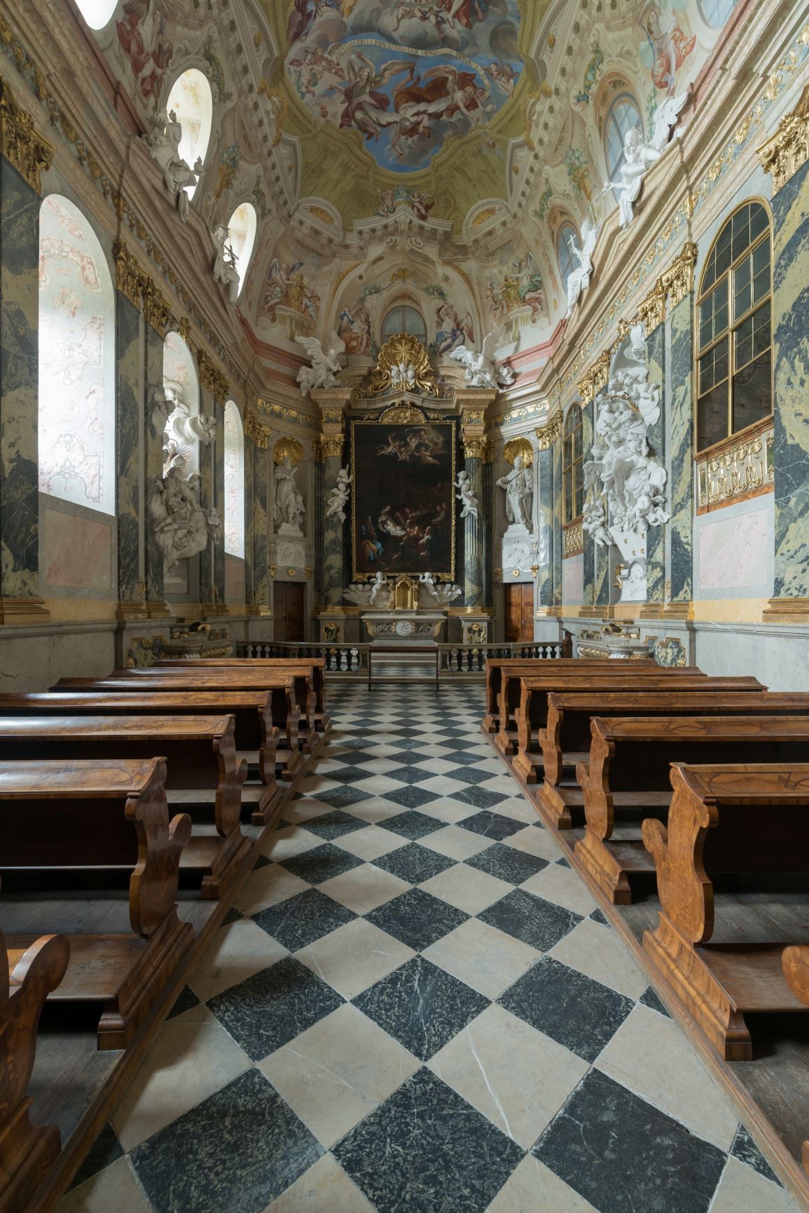Věhlasný italský architekt a dekoratér Antonio Beduzzi ji nejen vyprojektoval, ale sám také osobně vyzdobil freskami a navrhl sochařskou výzdobu interiéru. Roku 1728 byly do kaple instalovány unikátní varhany, největší zachované dílo vídeňského mistra Waltera, které i po bezmála třech stoletích svým jedinečným zvukem připomíná významnou úlohu umění a víry v životě lichtenštejnských knížat.