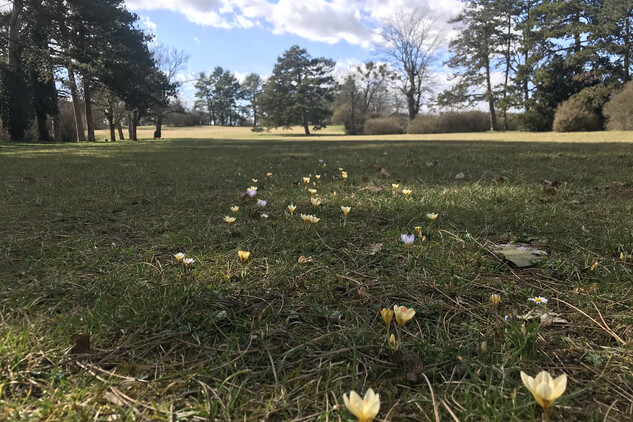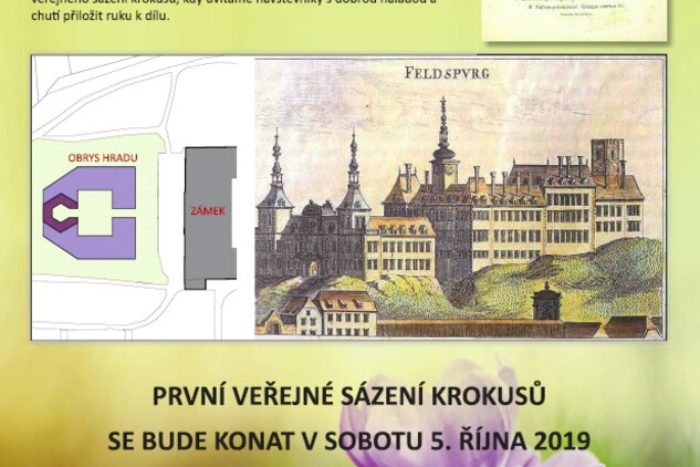 V říjnu 2019 jsme během dvou víkendů vysázeli 10.000 cibulek krokusů v obrysu bývalého hradu na zámecké louce a na jaře 2020 se objevily první vykvetené vlaštovky!! Na podzim 2020 vysázíme další části obrysu, zasazené rostlinky snad časem posílí a hrad bude čím dál výraznější.