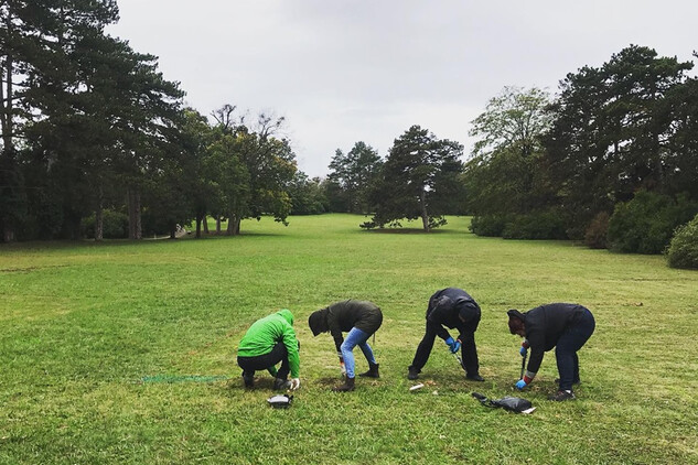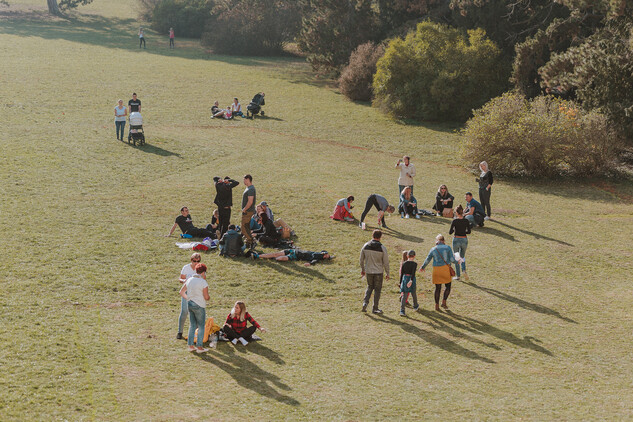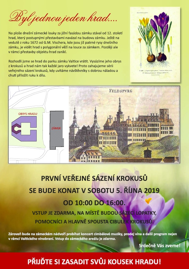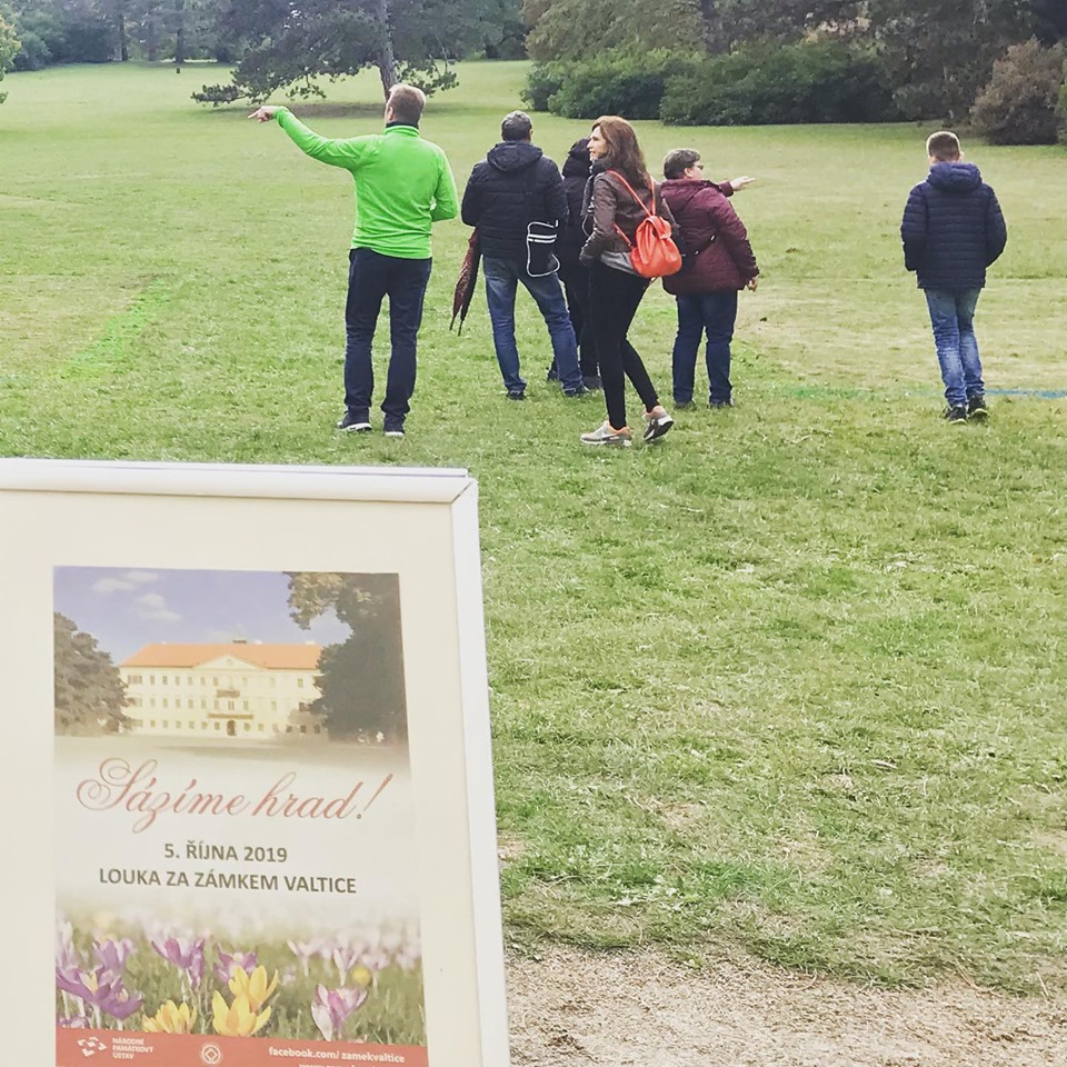 Fotografie z prvního sázení krokusů v termínu Valtického vinobraní, v sobotu 5. října 2019. I přes chladné počasí se podařilo vysázet téměř polovinu hradního obrysu. Děkujeme všem, kteří přišli.