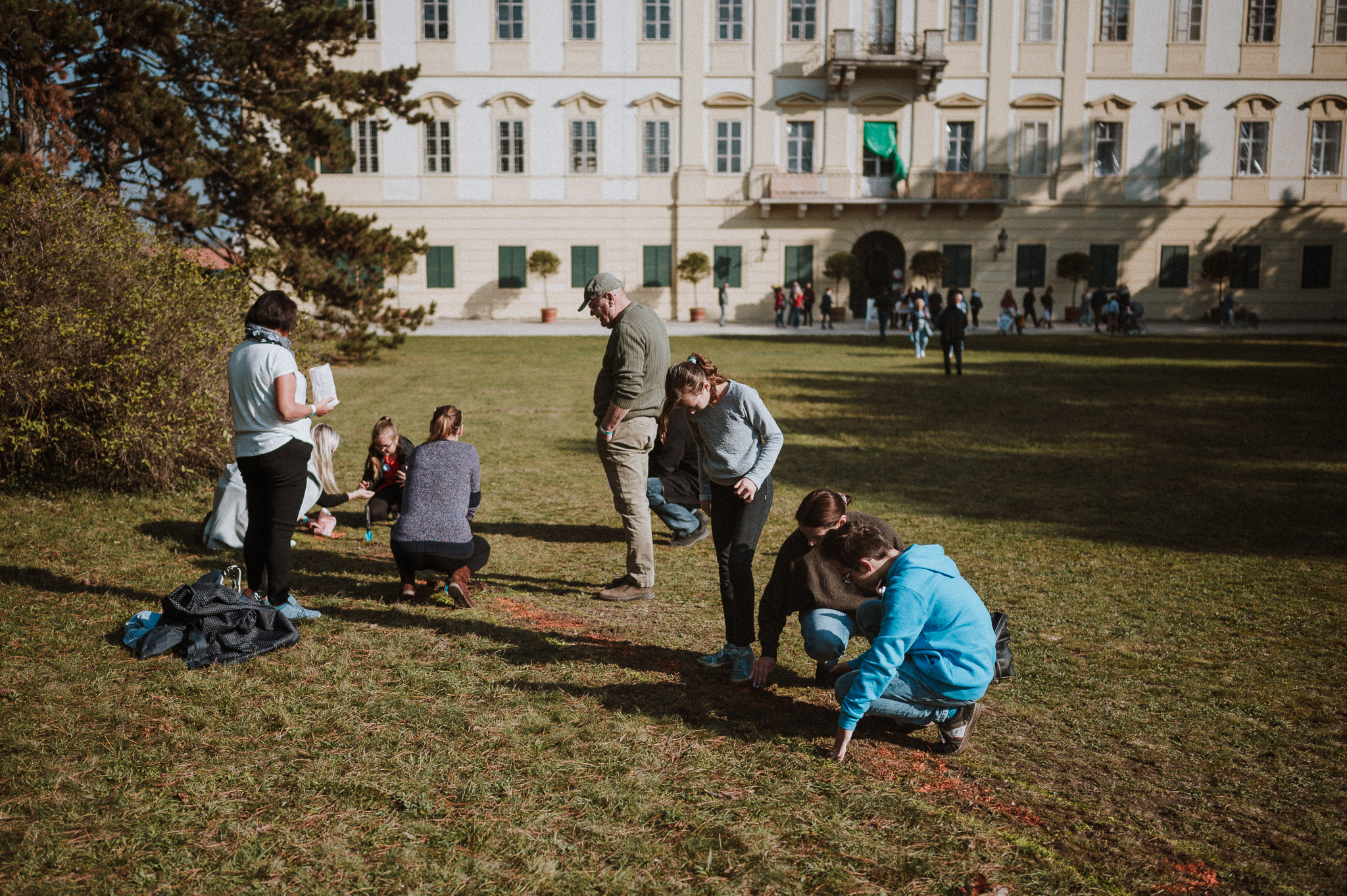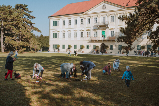 Fotografie z druhého sázení krokusů v termínu čokoládového festivalu na zámku Valtice, ve dnech 26. a 27. října 2019. Skvělé počasí a hojná návštěvnost způsobily rychlé vysázení všech připravených cibulek, navíc s velkou zábavou pro mnohé zúčastněné. Děkujeme!