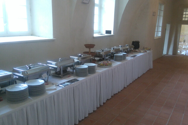 Prostor má velkou variabilitu uspořádání pro hostinu, zábavu i catering. Vše lze uspořádat v jednom sále nebo rozdělit do přilehlých prostor. Sály je možné vytápět i klimatizovat, což umožňuje celoroční provoz i s ohledem na uzavření zámku mimo sezónu (samostatný přístup), k dispozici je dostatečná kapacitu moderních toalet. Veškeré dotčené prostory jsou po kompletní rekonstrukci v roce 2015.
