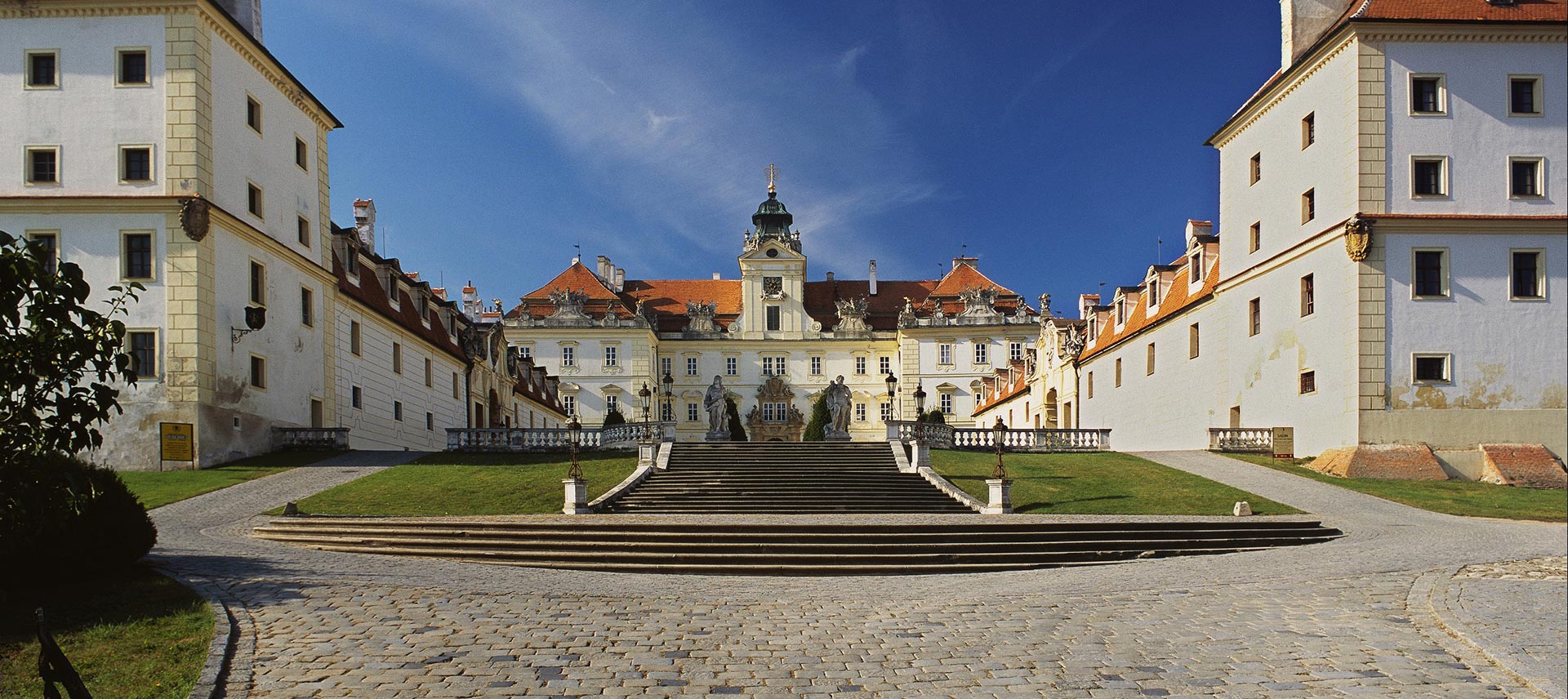 Schloss Valtice, das durch die Erweiterung einer vermutlich im 11. Jahrhundert gegründeten Burg entstanden ist, war vom Ende des 14. Jahrhunderts bis zur Konfiszierung nach dem Krieg der Sitz des regierenden Fürsten der Adelsfamilie Liechtenstein. Ausmaß und Pracht der barocken Verzierungen beweisen heute noch, dass das Schloss die Residenz eines der mächtigsten Adligen der Donaumonarchie war. Berühmte europäische Baumeister (Tencalla, Vater und Sohn Erns, Ospel, Martinelli, Beducci und viele andere) waren am Bau des Schlosses beteiligt. Das Schloss erhielt seine derzeitige Gestalt durch aufwendige Umbauten im 17. und 18. Jahrhundert. Seit der Enteignung im Jahre 1945 ist es im Besitz des tschechischen Staates und wird vom Nationalen Denkmalinstitut verwaltet. Seit dem Jahre 1996 wird das Schloss als untrennbarer Bestandteil des Parkareals Lednice-Valtice auf der Liste des UNESCO-Weltkultur- und Weltnaturerbes geführt.