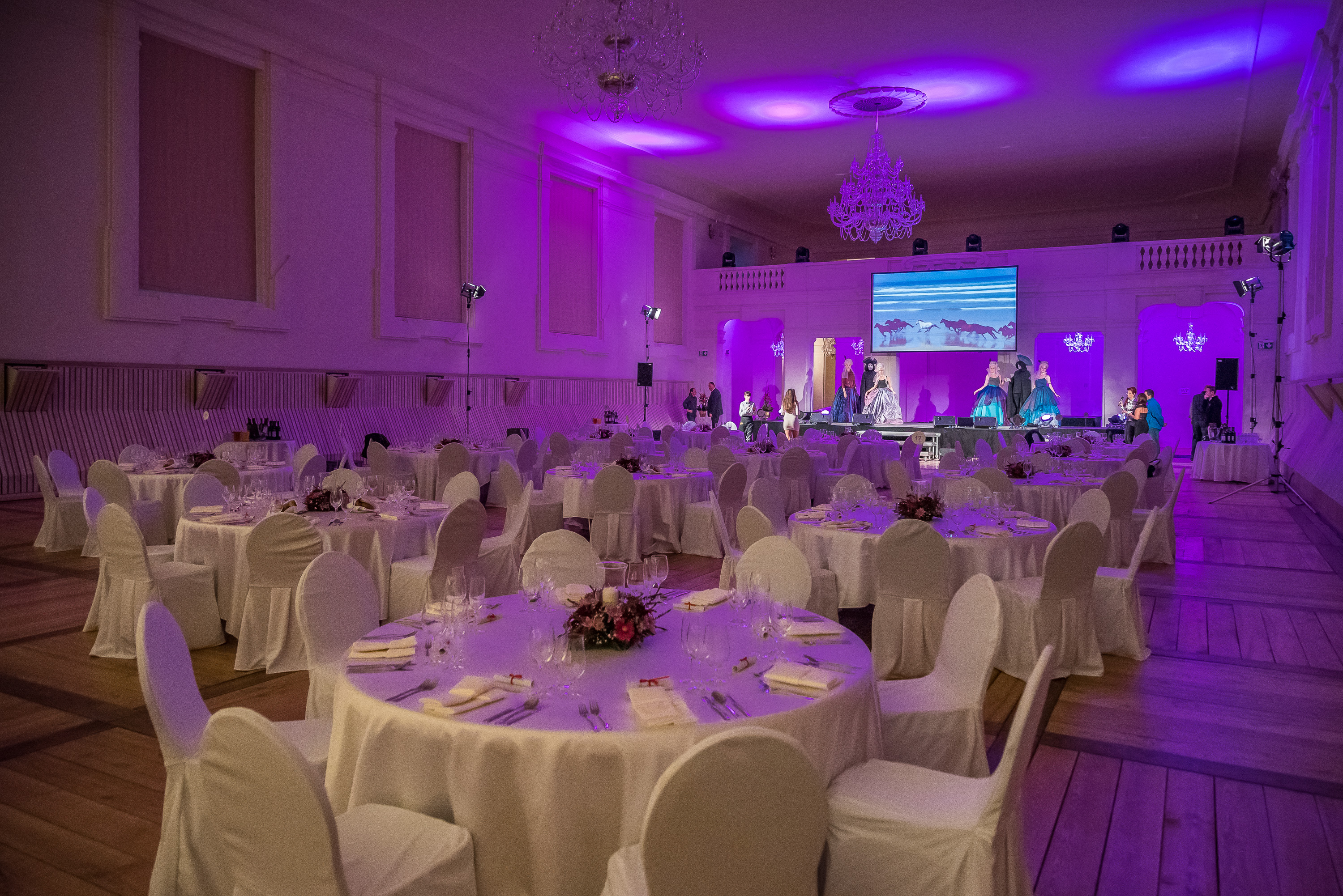 The Riding-Hall is equipped with independent catering facilities, facilities for performers, cloakroom, and direct access to the toilets. The Riding-Hall has 4 entrances – for performers, deliverers, catering, and the main entrance is through the castle premises. The area also includes 2 balconies and 3 lounges with separate entrances. Another part is the lounge with the balustrade above the Riding-Hall, also with a separate entrance from the courtyard.